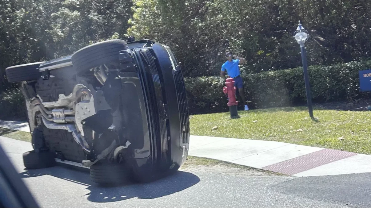 Woods reportedly exited the vehicle by crawling through the passenger-side door. Although he passed a breathalyser test at the scene, showing no alcohol in his system, he declined to provide a urine sample.