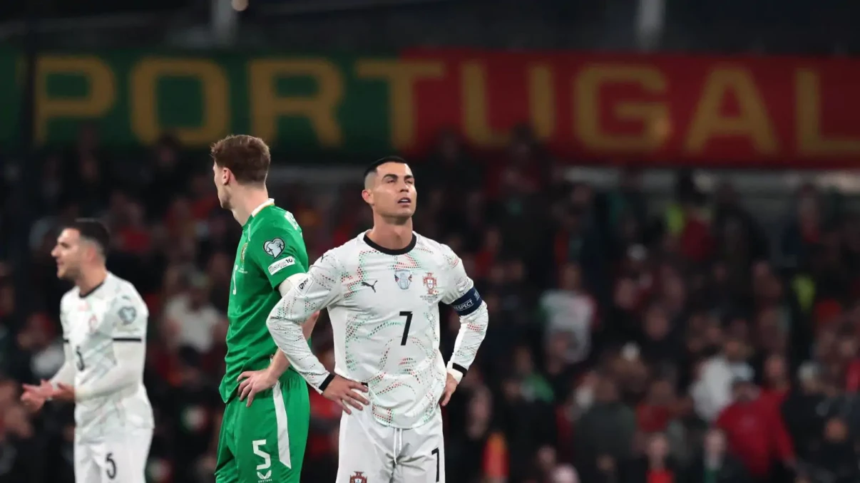 The night turned chaotic on 59 minutes when Ronaldo, already increasingly agitated, was sent off for elbowing O'Shea off the ball. Referee Glenn Nyberg upgraded an initial yellow to red after a VAR review, prompting heated words between Ronaldo and Ireland manager Heimir HallgrÃmsson as the Portugal captain left the pitch.